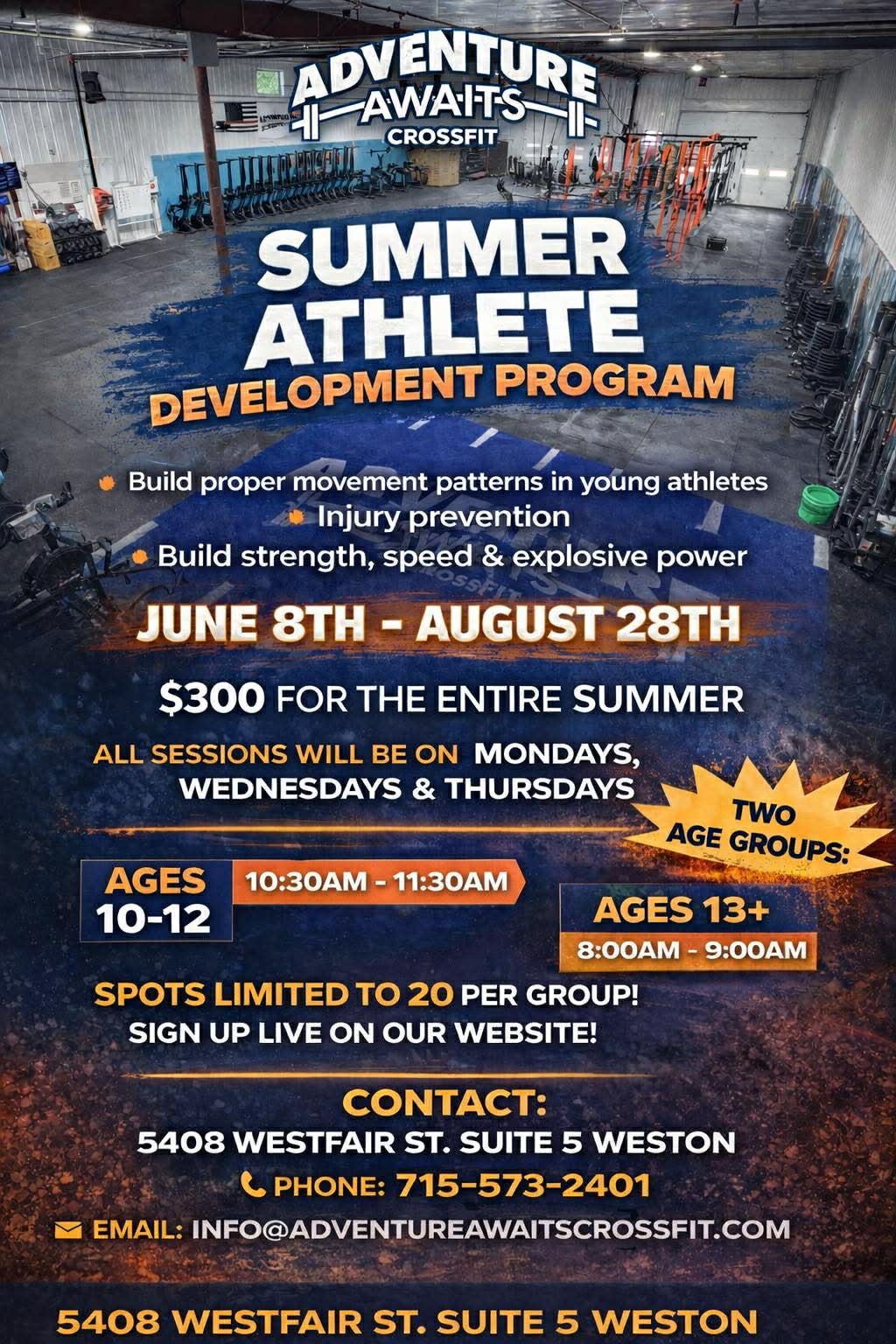 Summer AD Sessions (6/8 thru 8/28/26) | $300